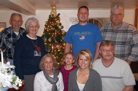(L-R) Mike and Sheri Arison, Charlotte Jackie Robinson of Russett once again hosted her annual family Christmas get-to-gather. The event included a splendid dinner and enjoying Christmas carols performed by Tracy Miller and her son Brett, of Spencer.
