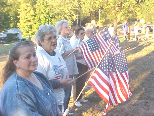 | Last year on 9-11 a second county-wide event was held on Hamilton Field on High Street in Grantsville, sponsored by the Knotts United Methodist Church. This year there is no organized event, just a welcome to come. A time to pray and meditate for America and for peace in our troubled world. It will will a silent vigil, no words, no music, just time to reflect for one hour. Participates are invited to bring a chair, if they like. It starts at 7 p.m. Looking back at "Community Comes Togther On Memorial Field" from The Hur Herald 9/11/2002: