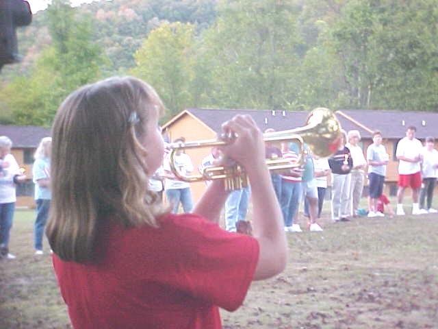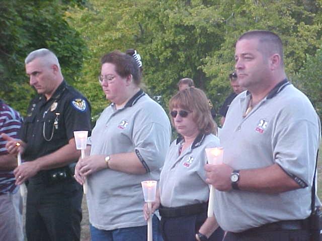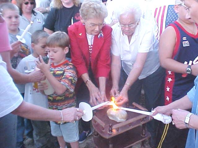 ![]() Pastor Mary Zimmer welcomes the community, gives message of hope It was a coming back to the mountain experience last night at a special candlelight memorial service for 9-11 survivors and the future of America. A large crowd gathered on Hamilton Field above Grantsville to recall their experiences, hear a message of hope and enjoy some special singing. VFW Post 5959 presented the colors. Pastor Mary Zimmer called upon clergy people from around Calhoun to give prayer, and those attending went forward to light their candles of remembrance from the "Christ Candle." During much of the day, national leaders and survivors met on "hallowed grounds" where citizens lost their lives in the attack on America. There was a recollection of one of the greatest speeches ever given, Lincoln's Gettysburg Address.