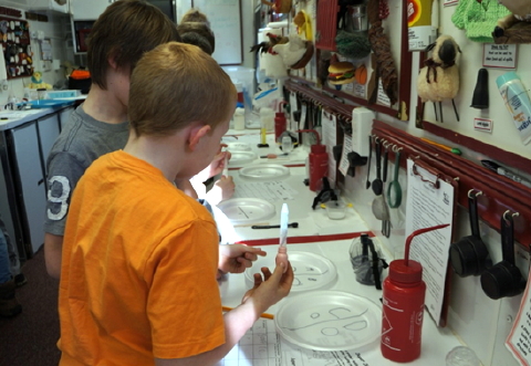 Young scientists work on "Super Slurper" experiment The WV Farm Bureau's Mobile Education Science Lab at Arnoldsburg Elementary School last week was a big hit with students. The 40-foot Lab is a fully self-contained unit equipped with multiple research stations. A retired or certified teacher guides students while they conduct hands-on experiments designed to meet WV Department of Education standards. Children learn about the importance of agriculture in everyday living. Students in all grades participated in hands-on science experiments including "Corn to Plastic,", "Super Slurper," "Colorful Bean," among others.