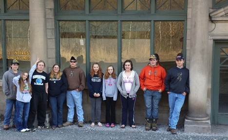| Submitted by Leigha McIntyre Natural Resources Management teacher Calhoun-Gilmer Career Center The Natural Resources Management class from Calhoun-Gilmer Career Center had the opportunity to travel to Beckley, WV for a "Past to Present: A trip through WV's Coal Mining History" on April 9-10. The class spent several weeks learning about coal, the mining process and the economic and social impacts that coal has had on the state of West Virginia. The group toured the Beckley Exhibition Coal Mine to see and hear first-hand accounts of life in the coal mines.