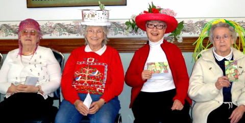 |  There was 15 participants in Crazy Hat Day at the CCCOA- Grantsville Site, April 8th. Winners are pictured above (L-R) Joann Ward (most unusual), Alta Mae Richards (most original), Eleanor Caltabiano (prettiest), Violet Williams (funniest) |