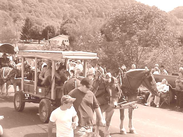 The 35th Molasses Festival is history and co-chairperson Linda McCartney said "We had a wonderful group of people helping this year, trying to replace some of the old-timers like Pete Bush who passed away, and Deward Offutt who has been under the weather." There is a long list of Arnoldsburg area old-timers who stuck with the festival and made it a success. "The molasses making went really well. There was a great crew doing the job and nearly all of the jars have been sold," said McCartney. This year's King and Queen will join the list of young people for the past 35 years. Third grader Jacob Jett, son of Ron and Tammy Jett of Orma, was crowned King. Ashley Houchin, a fourth grader, was crowned Queen. She is the daughter of Jeff and Kelley Houchin of Arnoldsburg. This year's festival was described as one of the biggest and best, according to McCartney. The Hur Herald camera had a malfunction in the middle of the parade, missing several pictures. Some of the pictures turned out in old-time sienna...probably user malfunction. We are still sharing some of them with you in this Molasses Festival Scrapbook.