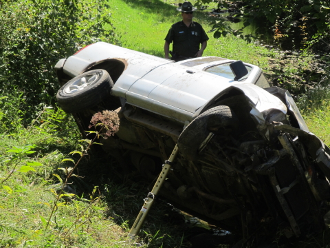 DRIVER CRASHES INTO BRIDGE, PLUNGES INTO CREEKBED NEAR GRANTSVILLE |