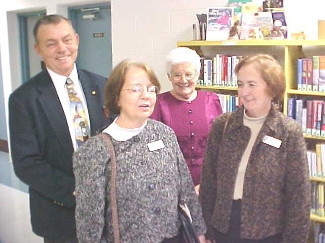 WV Library Commission representatives Karen Goff, Karen Hiser (front) Delegate Bill Stemple, Board President Grace Richards (rear) "A place where the lofty spirits of all nations and generations meet." - Samuel Nige By Bob Weaver Yesterday was open house at the Calhoun's only public library, celebrating a history of 35 years at the current location. "A wonderful library it is," said library board member Tom Gainer, a former Calhoun Commissioner, who was the honored person at the celebration. Gainer, who has been suffering health problems, has been a dedicated friend of the library, not only as a board member, but has also contributed time and labor to many different projects over the years. President of the Library Board Grace Richards said "Tom Gainer has been a great asset to this library and this community." Gainer praised Delegate Bill Stemple for obtaining $60,000 for the library from the Budget Digest and other sources over the past six years. He spoke generously about the "dedicated efforts" of the staff and community toward improving the facility and keeping the doors open.