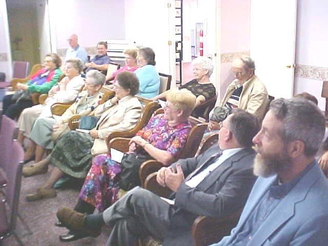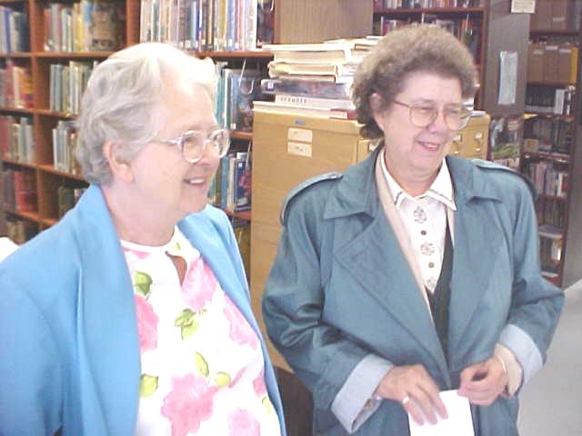 Dorcas Cain (L) and Sandy Marshall (R) "It is a place that helps guarantee open information, freedom and liberty," said Goff. She said it is place for the not so rich and famous, who have gone into the world and done wonderful things for the human race. President Richards ask those attending to help spread the word about the small library levy on the November 5 ballot. "For most taxpayers in the county it will be the cost of a gallon of milk and a loaf of bread, each year," she concluded. The levy has been defeated in the past by a small percentage. "It has almost carried," said Librarian Glada Stump. "But almost has not been enough." Stump said the passage of the levy is crucial to continued operation. Members of the board in attendance, Grace Richards, Dorcas Cain, Helen Morris, Dora Starcher and Tom Gainer. |