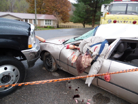 Fake crash at scene provided by U & S Trucking,