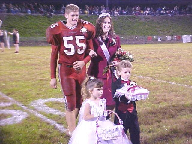 Homecoming Queen Leah Harold, daughter of Randall and Beverly Harold of Chloe (crowned by previous 2001 Queen Maryellen Bell; Senior Princess, Emily Yoak, daughter of Sharlene Heiney and step-daughter of Charles Heiney of Grantsville, escorted by Jared Brewer; Senior Princess, Britttany Law, daughter of Bill and Connie Law of Grantsville, escorted by Tim Parkin; flower girl Karlie Johnson, 3, daughter of Rob and Crissy Johnson of Grantsville; crown bearer, Boston Slade Evans, 5, son of Brian and Jessi Evans of Creston.