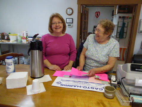![]() Judy Knotts and Esther Laughlin greet bakery customers