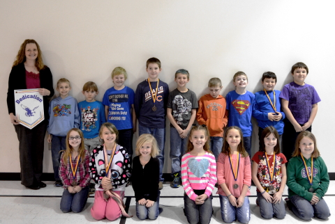 Attendance Award Mrs. Whited's 3rd Grade Class - (Front L-R) Emily Dennison, Kameryn Toney, Adrianna Taylor, Zoey Kute, Jayda Osborne, Skylar McCumbers, Chloe Roudebush; (Back L-R) Mrs. Jan Whited, Maxwell Moore, Trey Heiney, Hendrix Hardman, Bryant Yoak, Sawyer Henderson, Jacob Toney, Landon Staton, Levi J. Morris, Levi Stump, |