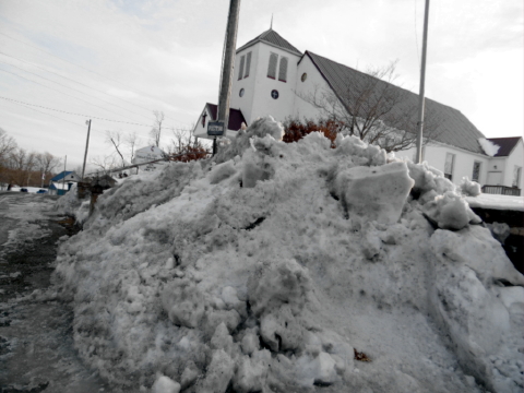 SNOW PILES - Snow piled at the Mt. Zion UM Church, after days of winter
