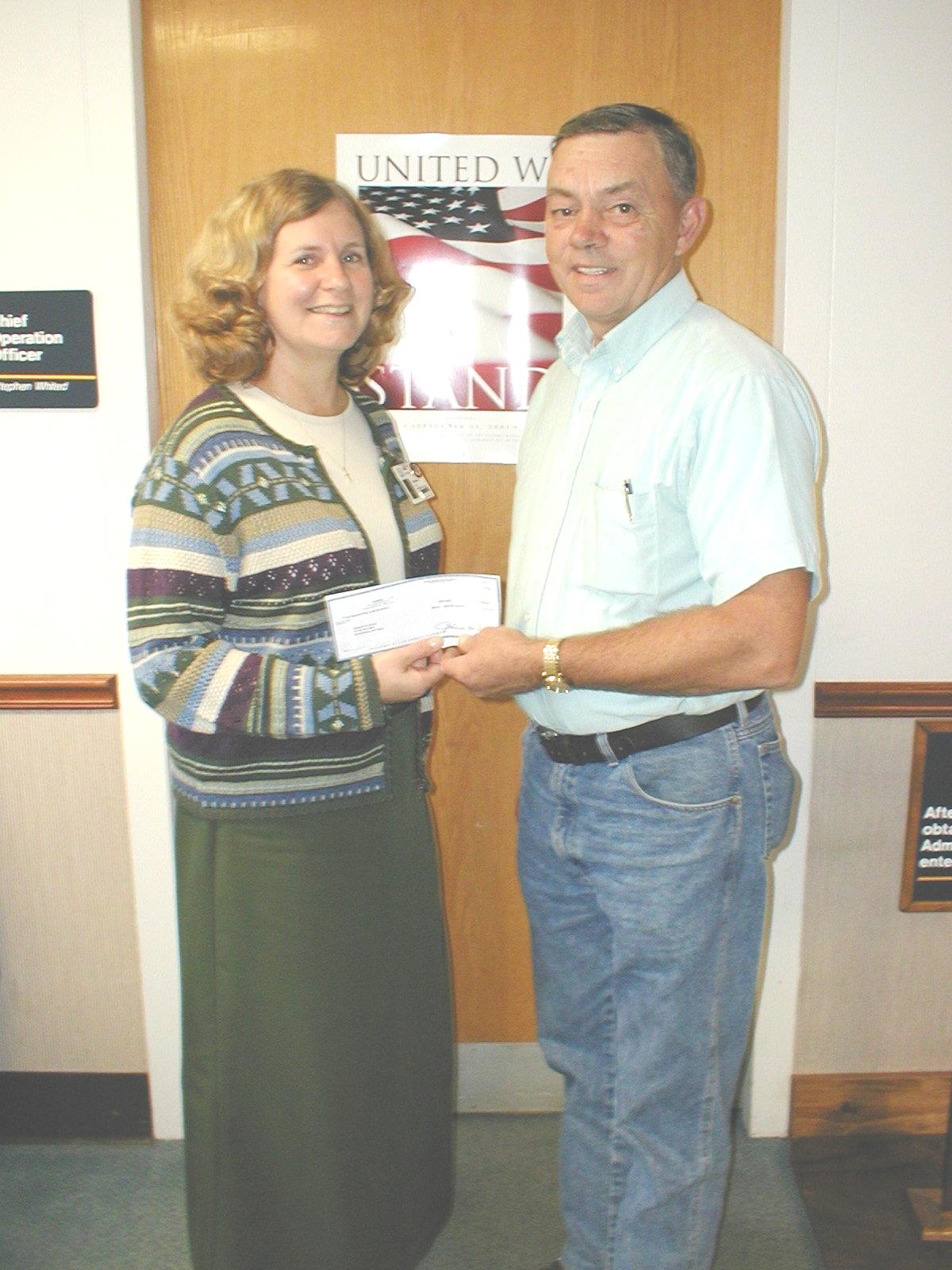 Barbara Lay, CEO of Minnie Hamilton Health Care Center, presents a HOSPAC check to Delegate Bill Stemple. During his term, Delegate Stemple has shown his concern for the state's health care issues and has actively worked to help enable the provision of quality health care. The West Virginia Hospital Political Action Committee is a separate segregated fund established by the West Virginia Hospital Association. One of the functions of HOSPAC is to contribute toward the election of candidates who are endorsed by the committee. HOSPAC checks are received by hospital chief executive officers to be distributed to candidates. |