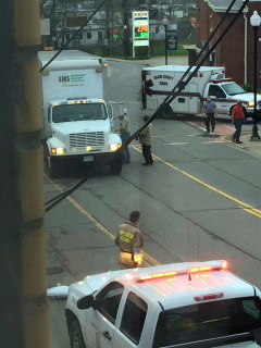 Photos courtesy of Chris Fountaine ORIGINAL STORY 4/7/2015 =A hadardous materials spill happened on Spencer's Main Street Tuesday evening, causing traffic to be re-routed. The spill has caused an area between Market Street and Rt. 14 to be shut down, with residents reporting an "ammonia-like odor that burns eyes." The compound identified as sodium bisulfate was in containers on an 18-wheeler box truck that had come into Spencer earlier in the day from a run in Ravenswood, according to Roane 911. The material was spotted by a passerby at 5:59 p.m. when that person alerted Roane County 911. The driver was reportedly unaware the material had spilled. A HAZMAT team called Environmental Management Specialists in Columbus, Ohio has responded to the scene for clean-up. The clean-up will take several hours. The 911 center said the protocol listed for this compound is to keep people away in a 150 foot radius. Roane's emergency responders are on scene. There have been no injuries reported. Traffic is currently being re-routed through town on different roads.
