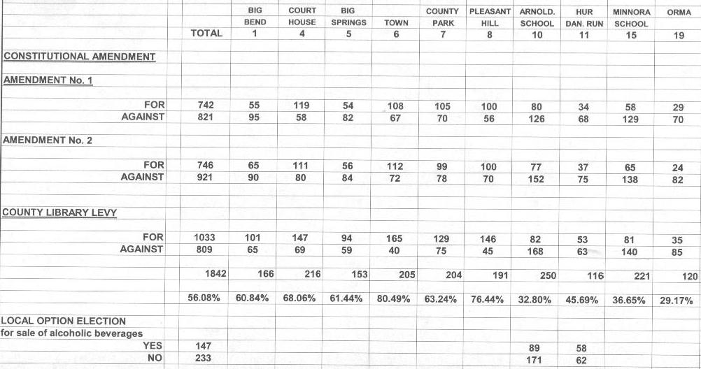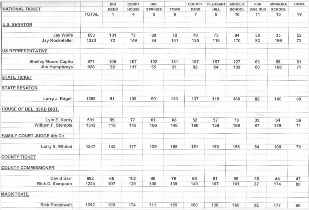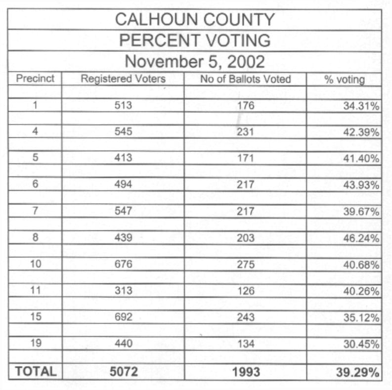 CALHOUN COUNTY GENERAL ELECTION - Votes By Precinct And Percentages