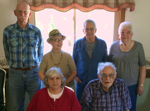 ![]() Celebrating April birthdays at the Calhoun County Committee on Aging were (seated L-R)) Lenn Phillips and Haymond Conrad; (standing L-R) Roy Pursley, Eleanor Caltabiano, Roy Pursley, Jim Wilt, Barb Roberts