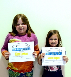 (L-R) Accelerated Readers 1st Grade, Kiara Lanham, Lexie Regan; Accelerated Readers 4th Grade, Levi M. Morris, Autumn Dye