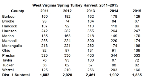 WEST VIRGINIA HUNTERS HARVEST 9,038 SPRING TURKEYS IN 2015 |