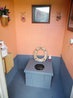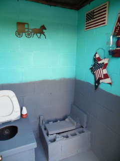 ![]() Arnoldsburg has some fancy outhouses August, 2015 Volunteers at Arnoldsburg's Community Park have tackled an ongoing outhouse problem by cleaning them up and adding home interior decor for beautification. The hope is that users will be most respectful when they use the outhouses, and keep them cleaner. Part of that hope includes that visitors will not swipe the decorative items. Time will tell if the experiment works.