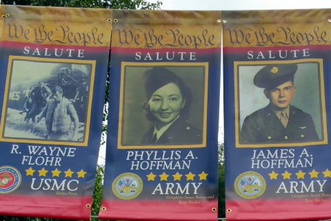 The flags are made of oil cloth and have a laminate coating to prevent wear and fading. The flags will be proudly displayed on Mill Street behind the Stump Hotel, the weeks of Veteran's Day, Memorial Day., and the 4th of July. Price of the flags is $70.00 each. If you are interested in honoring a member of your family complete the printable application/order form (below) with a 8x10 photo of the serviceman and a check made out to the Calhoun County Historical Society. The application can be mailed to Freedom Flag Project, 123 Johnson St. Grantsville, WV 26147 or dropped off at the History Center any Friday between the hours of 11 a.m. and 2 p.m. Applications will be accepted until October 1st. Click Freedom Flag for a printable application and order form |