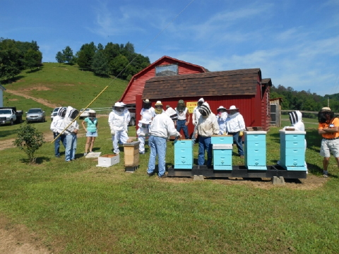 Al Darman The West Central Beekeepers Association held its' July meeting at the farm of Larry and Marianne Siers. The outing was well attended by the WCBA members. Wade Stiltner, State Apiarist, gave a live demonstration on the proper bee hive inspection technique. After the presentation, thanks was given by Larry Siers and the members enjoyed a delicious buffet style luncheon. The meal was accompanied by a drawing for door prizes graciously provided by the hosts, Larry and Marianne.