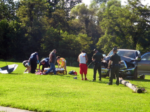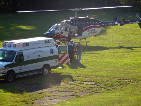 A truck driver lost control of his vehicle on State Rt. 5 at Annamoriah about 5 p.m. Saturday evening, a passenger was life-flighted by chopper to a medical center suffered trauma. The man was driving east on Rt. 5 when he lost control, the vehicle appeared to hit a dirt pile, then going airborne and then traveling about 200 feet through the yard of Barry Miller, striking a utility pole and clipping it off. The driver was taken to Minnie Hamilton Health System for evaluation. Electric service was disrupted in area. Two Minnie Hamilton EMS ambulances responded to the scene with the Grantsville VFD. State Police investigated the accident.