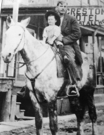 HISTORIC PHOTO: Lloyd Gibson (child on horse) in front of THE GREAT CRESTON FIRES - Five Died In 1917 Blaze, Historic Creston Store Destroyed By Arsonist 2008 HARD TO BELIEVE, CRESTON WAS A BOOMING TOWN CRESTON'S FIRES, FLOODS AND HARD TIMES - Twelve Dance Hall Fights In One Night LEGENDARY CRESTON DOCTOR REMEMBERED - Over 66 Years He Wore Out Five Horses, Delivered 2,028 Babies CRESTON - LEGACY OF AN ERA PAST