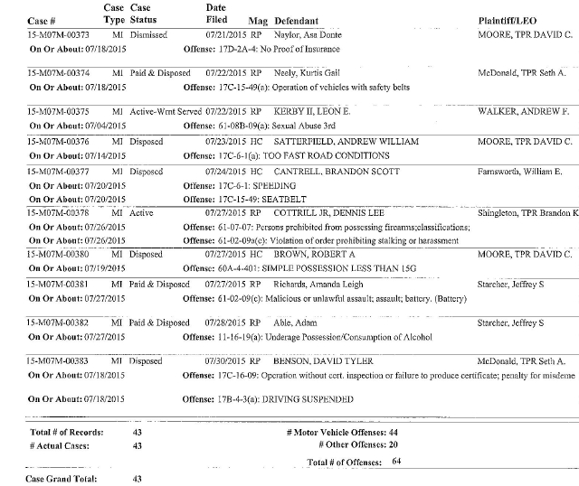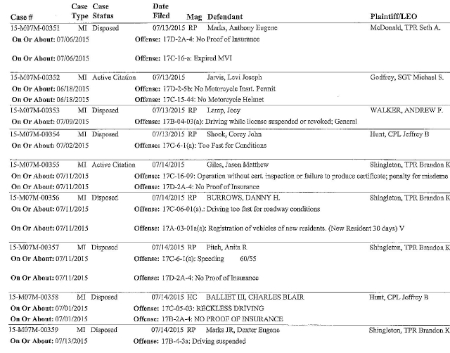| Magistrate Court records are obtained under public information laws, and are published by media in most every county. Records are accessed from a public information computer, available to the general public at the Magistrate Clerk office. The names of minors are withheld by the court if they have been declared "juvenile cases," otherwise they are on the released list. Newspapers and media under First Amendment law, can print all names and ages if they choose, although most develop policies related to the protection of victimized minors. The names of individuals who have yet to be served warrants by authorities, could be on the public information list. Citations (tickets) such as, no proof of insurance/registration/operator's are often dropped or dismissed upon proof. Others are assessed fines and/or court cost. Being cited or charged is not an indication of guilt or innocence of crime. The information should not be construed or considered disparaging to the individual in any way.