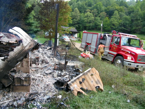 ![]() Mobile home burns near Rosalie King residence on Gibson Rd. A mobile home that had been occupied by Travis Sampson, 28, on Gibson Road, a short distance in Clay County off Walker Road, burned to the ground Monday. Sampson was charged last week with possession of a deadly weapon, cultivation of marijuana and possession of a controlled substance and is incarcerated in Central Regional Jail. The Upper West Fork and Big Otter VFDs responded to the blaze at 12:17 p.m. discovering the mobile home was burned to the ground on arrival. Sampson was in a dispute last week with residents in an adjacent house, threatening to kill them. Multiple State Police units responded to the incident. See related story WALKER-GIBSON RD. MAN CHARGED AFTER THREATENING TO KILL RESIDENTS