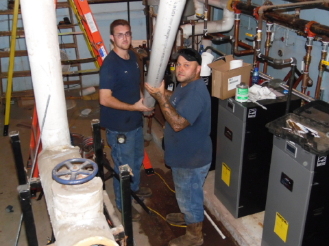 A crew is finishing up the installation of three new boilers in the Calhoun Courthouse, with funds obtained for the project by the Calhoun County Commission