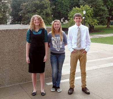 Left to right: Eighth (8th) grade students Hope Carter, Megan By Dan Cosgrove After reading a July 2015 article written by Mr. Woodward, the county's superintendent, on the inequity of the state's funding formula, and a comment that a delegation was planning on going to Charleston in September to talk to lawmakers about the problem, middle school social studies teachers decided to have their 8th grade classes research the merits of the assertions as part of their West Virginia studies. Students researched various sources, including the West Virginia Constitution. After the preliminary research, the superintendent was invited to speak to two 8th grade classes. Woodward gave an in-depth discussion on the various funding streams, including local, state and federal with a focus on the state's funding formula. A committee of five students was selected to continue research and met on a separate occasion in a working meeting with Mr. Woodward. Three 8th grade students traveled to Charleston on September 14th and joined both Mr. Woodward, and Calhoun Board of Education's president, Steve Whited, as part of the Calhoun delegation to meet with state senators to discuss the inequity in the state's funding formula Students Hope Carter, Megan Harding and Cole Rogers were selected to brief senators. Ben Holcomb and Kelcie Wilson were also key members of the research team. Students toured both the senate and house chambers.