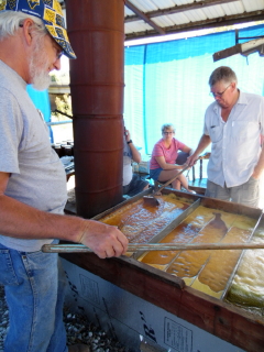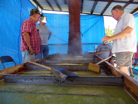 ![]() Volunteer molasses makers stirrin' the juice
