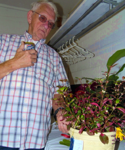 Kenneth Keaton of Minnora displays his award winning plant "Joseph's Coat of Many Colors" at 48th Molasses Festival