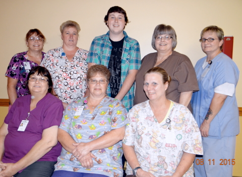 Front (L-R) Sheri Honaker, Tammie Jones, Jony Harding; Minnie Hamilton Health System, Dietary Department recently achieved the "Golden Star of Excellence" from the Mid-Ohio Valley Health Department, Division of Environmental Health. This recognizes an establishment that has shown outstanding compliance in the areas of Food Preparation, Cleanliness, Personal Hygiene and Temperature Control. John Dennis, S.I.T. noted that this is the first Golden Star that he has issued. The Dietary staff at Minnie Hamilton is supervised by Molly Yoak, Angela Robinson, Assistant.