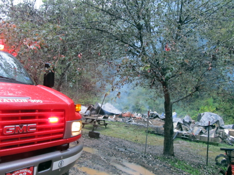 MOBILE HOME DESTROYED BY FIRE ON RUSH RUN |
