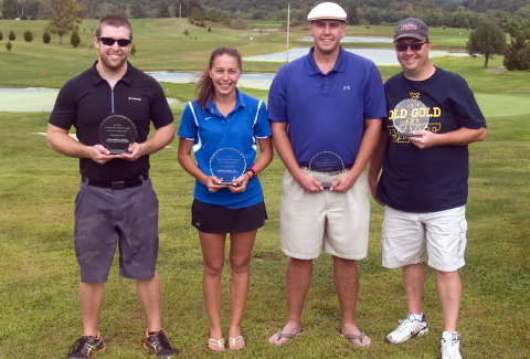 Overall winning team was (L-R) Isaac Goff, Twenty six teams participated in the 3rd Annual Minnie Hamilton Health System Regional Golf Tournament held at Mingo Bottom Golf Course on September 26. The overall winning team was, Isaac Goff, Sami Moore, Matt Moore, and Scott Eddie. Closest to the pin on hole #16 was Jason Redden, on hole #3 was Richard Price. Longest Marshmallow drive was Keith Francis. Putting contest, Casey Staples. Straightest drive, Mason Husby and for Women, Doris Wheeler who was 2 ½" from the center line.