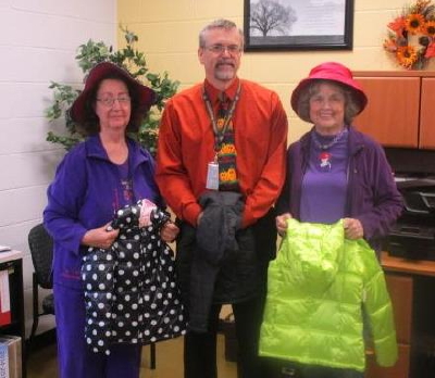 ![]() The Glamour Girls, local chapter of the Red Hat Society, met at the "Y" Restaurant Friday, October 30th for a get together and had a great lunch. They were also busy separating coats by size, that they were donating to the Arnoldsburg School. After their lunch Lorraine Bailey (above right) and Waneta Boggs/Saunders, took the coats to the school for delivery and met with the principal, Charles Thomas. Every year the gals do this, as their group project, they love to call "Coats for Kids". Thirty-seven coats were delivered, as well as hoodies, sweatpants and sweatshirts, tennis shoes, socks, etc. The Glamour Girls wish to thank Ken Rodgers from New Jersey for sending 5 boxes of coats, along with the other items. Ken's family was from this area years ago and he just wanted to "help out". He certainly is "one of a kind", and the Red Hat Glamour Girls want to thank him from the bottom of their hearts! He is truly "an Angel in disguise".