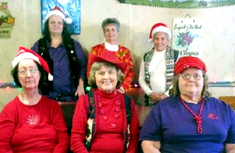 (Front L-R) Waneta Boggs-Saunders, Lorraine Bailey, Carol The Red Hat Glamour Girls, one of the two Calhoun Chapters of the Red Hat Society, held their annual Christmas party at the "Y" Restaurant on December 15th. After a nice luncheon, the gals exchanged Christmas cards and cookies that each had baked. They then held a Yankee swap by drawing numbers to see who got to pick a gift first, second, etc. It was loads of fun because the gifts were wrapped and no one knew what was in the Package. The gifts were, as usual, very nice and everyone enjoyed their gift. The gals did discuss several future trips, as they were unable to do much this past year, due to illness of almost every one of the members, or their husbands. We really wish for a better, healthier year for everyone! The next "get together" is planned for January 20th, 2016 and hopefully every third Wednesday of each month of the next year.