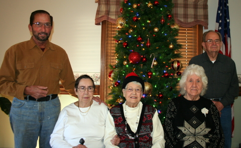 Celebrating December birthdays at the Calhoun County Committee on Aging, Grantsville Center were (L-R) Steve White, Mary Nichols, Jean Miller, Evelyn McCormick, and Duane Poling