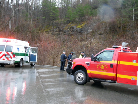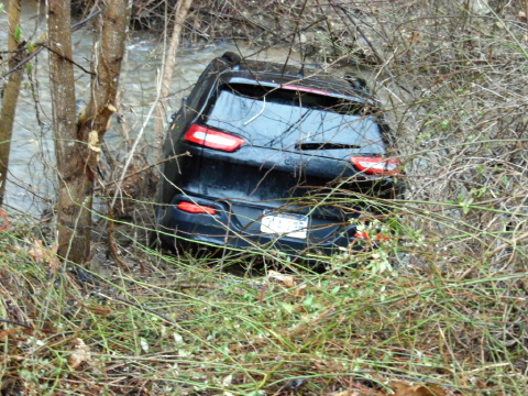 A car parked in the Grantsville Foodland parking lot broke loose Wednesday, drifted across the lot and plunged over a steep hill, nearly going into Phillips Run. Authorities said an elderly woman was in the passenger seat when the vehicle crashed. They indicated she was uninjured. Minnie Hamilton EMS, Grantsville Police and VFD responded to the incident at 2:07 p.m. |