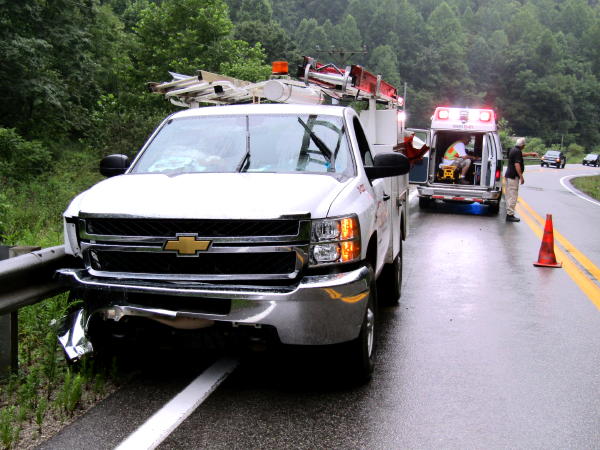 ![]() A Frontier Communications truck crashed against a guard rail at Letherbark (US 33-119) with the driver escaping injury. The incident happened just before noon Thursday. The Arnoldsburg VFD and the Calhoun Sheriffs Department responded. |