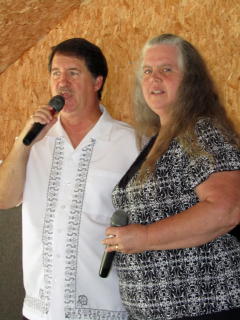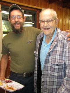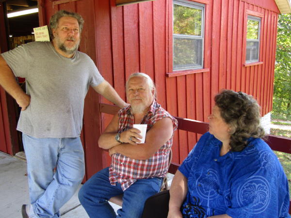 (L) Dennis Starcher and Warren Kerby chat and The Bowens sing gospel