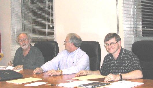 ![]() Commission members (L to R) Bob Weaver, Larry McCallister and Rick Sampson The Commission acknowledged the regional jail bill is still "paid off," a considerable task since it has frequently reached over $100,000 in recent years. Commissioner Weaver suggested asking for $100,000 for the new Emergency Services Center from the Budget Digest, forwarding the request to Del. Bill Stemple. Other items on the Budget Digest request list, $40,000 for mandated computer services, $5,000 for furnace replacement in the old jail building, $15,000 for bleachers at Wayne Underwood Field and $5,000 for developing camping sites at Calhoun County Park. Budget Digest funding could be in trouble this year because of financial problems with the state. During recent years, Delegate Stemple and other legislators have managed to obtain about $225,000 for projects in the county. At the request of Congresswoman Shelly Moore Capito, the Commission presented a list of items for which assistance is needed, including the funding of a new fire truck for the Grantsville Volunteer Fire Department, help with the Emergency Services Center and several other projects. There was discussion regarding a new application for water development for the county through the Appalachian Regional Commission. The Back Fork-Yellow Creek water extension has been slowed down because two more customers are needed for the project, but Fred Rader of the Mid-Ohio Valley Regional Council said the project is still a go. During a public hearing regarding a Natural Hazard Mitigation project, Rader presented a draft of an assessment, one of the first phases before it can be implemented in the county. The mitigation project would allow the county to qualify for FEMA or other government money in the event of natural disasters, including buyouts of flooded property, elevating structures or raising frequently flood roadways. Other natural disasters would also qualify. The local LEPC board will serve as the mitigation committee. The governments effort to begin smallpox vaccinations was discussed by Larry Lee and James Rose of the Mid-Ohio Valley Health Department. Lee said vaccinations are expected to start with hospital and EMS workers within the next two months. "It is now on a voluntary basis," he said. Rose said 50 tons of medication could be brought in quickly for use if biological weapons were used. The MOVHD covers 130,000 people in a six county area. Mass inoculation would not happen until an emergency occurs, since there are some risks with the vaccine. It was acknowledged the monument to Wayne Underwood at the old football field will be moved to the Mt. Zion campus. Rick Sampson was appointed to the 911 Board, the Extension Service Board, Lights On! and the CRI Board. The Commission appointed two more members to the Wayne Underwood Recreational Facility Board, Rex Yoak and Henry Cooper, making a total membership of eight. A bid for $1200 annually was accepted from Dick Morris to use the old bus garage for storage, with the Commission using the money to help defray operation of the field. The Commission asked E-911 Director Barry Pitts to seek help from 911 in Charleston to complete local mapping and addressing. The 911 system has been at a standstill since McKenzie Engineering declared bankruptcy. Pitts said most of the system is done, but the completion of addressing, which is a computer generated task. Dates were set for five special meetings of the Board of Equalization and Review: February 3rd at 4 pm; February 6th at 5 pm; February 10 (oil and gas) at 5 pm; February 13th at 5 pm and February 18th at 5 pm. Three additional members were appointed to the LEPC Board, Marvin Stemple and Nina Smith, with Larry McCallister replacing David Barr. The Commission also processed bonds, bills, wills and settlements, in addition to reviewing the Budget Control Report. See additional story regarding Emergency Services Center. |