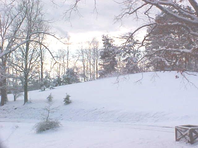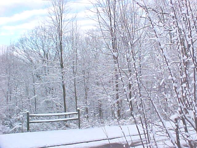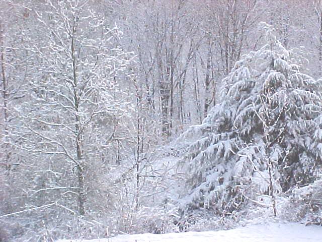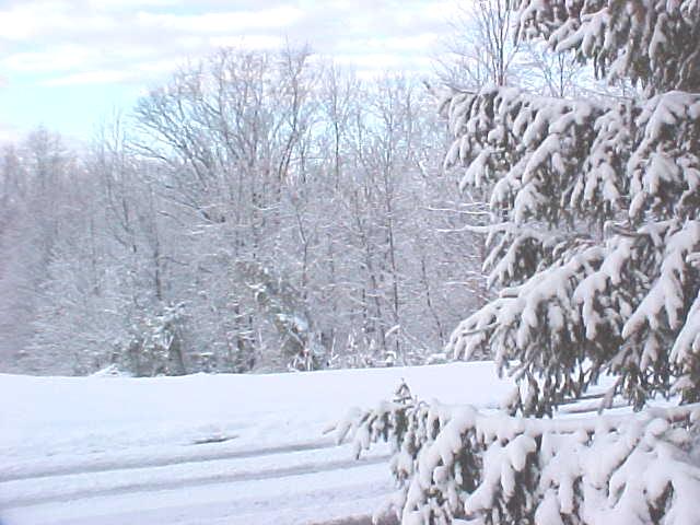 snow. The really big snow is overdue. Yesterday was a snow day, covering the pines and trees around the Executive Suite of The Hur Herald. Not much accumulation, but quite beautiful. We claim to have a weather anomaly in the Village of Hur. We have more of it than anywhere else in the county, whatever it may be - snow, rain, wind, storms. So, here is a view from the Weaver's front yard.