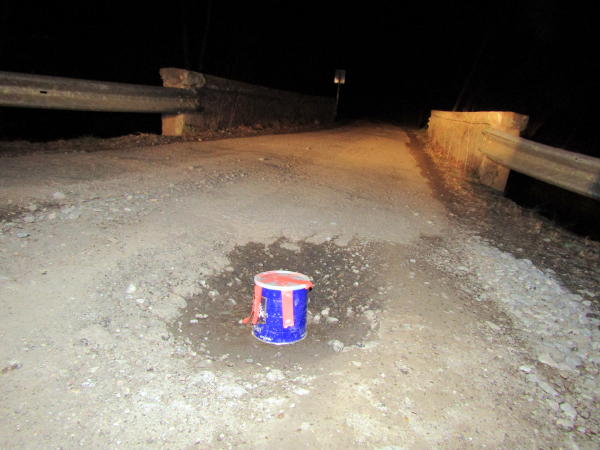 CIVIC MINDED PERSON ATTEMPTS TO WARN MOTORISTS OF DEEP POT HOLES