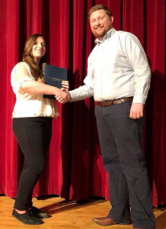 ![]() (L-R) Chelsea Stickleman from Glenville State College presented scholarships to Levi Estep and Hayes Vineyard