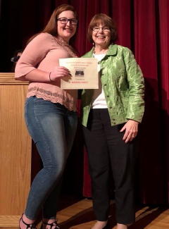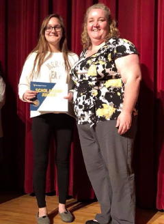 ![]() (L) Jean Simers presented the Alumni Association Scholarship to Mariah Croft (R) Daisy Bailey presented scholarship to Jocelynn Heiney