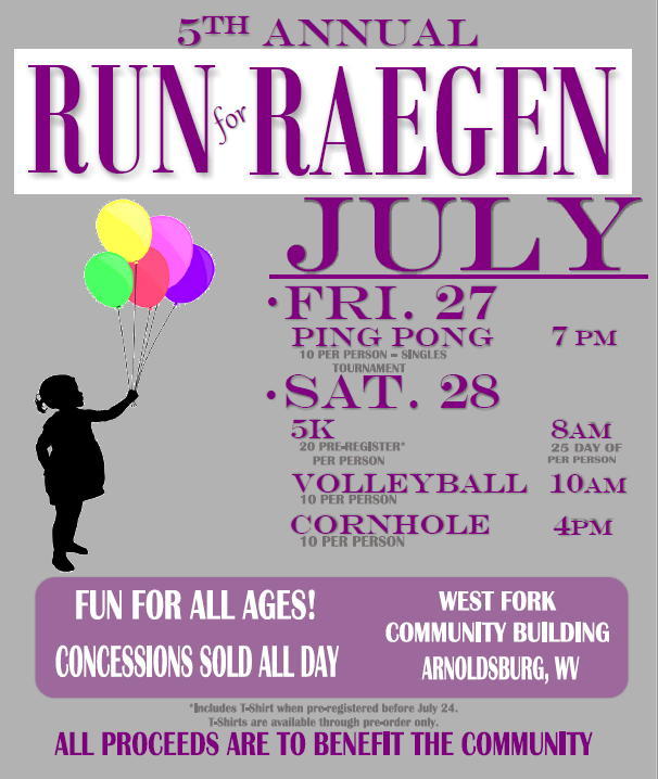 5TH ANNUAL RUN FOR RAEGEN CONTINUES AT ARNOLDSBURG - Fundraiser For Calhoun Kids