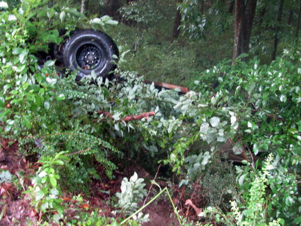 A driver lost control of a pick-up truck on the Mt. Zion Ridge Route 16 about 4 p.m. Tuesday during a heavy downpour of rain. The accident happened near the Little Kanawha Bus headquarters. The vehicle landed in the woods on its top. The driver was not injured. Calhoun EMS and the Grantsville VFD responded to the incident. Sheriff Jeff Starcher and State Trooper Jeff Hunt was investigating. The storm downed some large trees in the nearby area.
