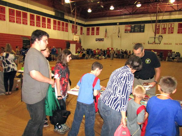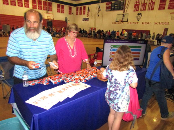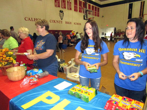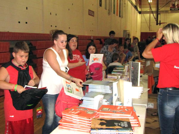 Books, books and more books given away Hundreds of students and parents turned out to the Back to School Bash at Calhoun Middle-High School Tuesday evening, with lots of free books, school supplies and personal items given away. About 40 booths were set-up in the school gym, prepping kids for the start of school Thursday.