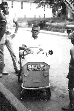 ![]() In the early 1960's, Kenny Gainer was always a popular sight in the various Grantsville parades with his homemade go-cart, which was powered by a lawnmower engine. Standing to left is Earl Minney.